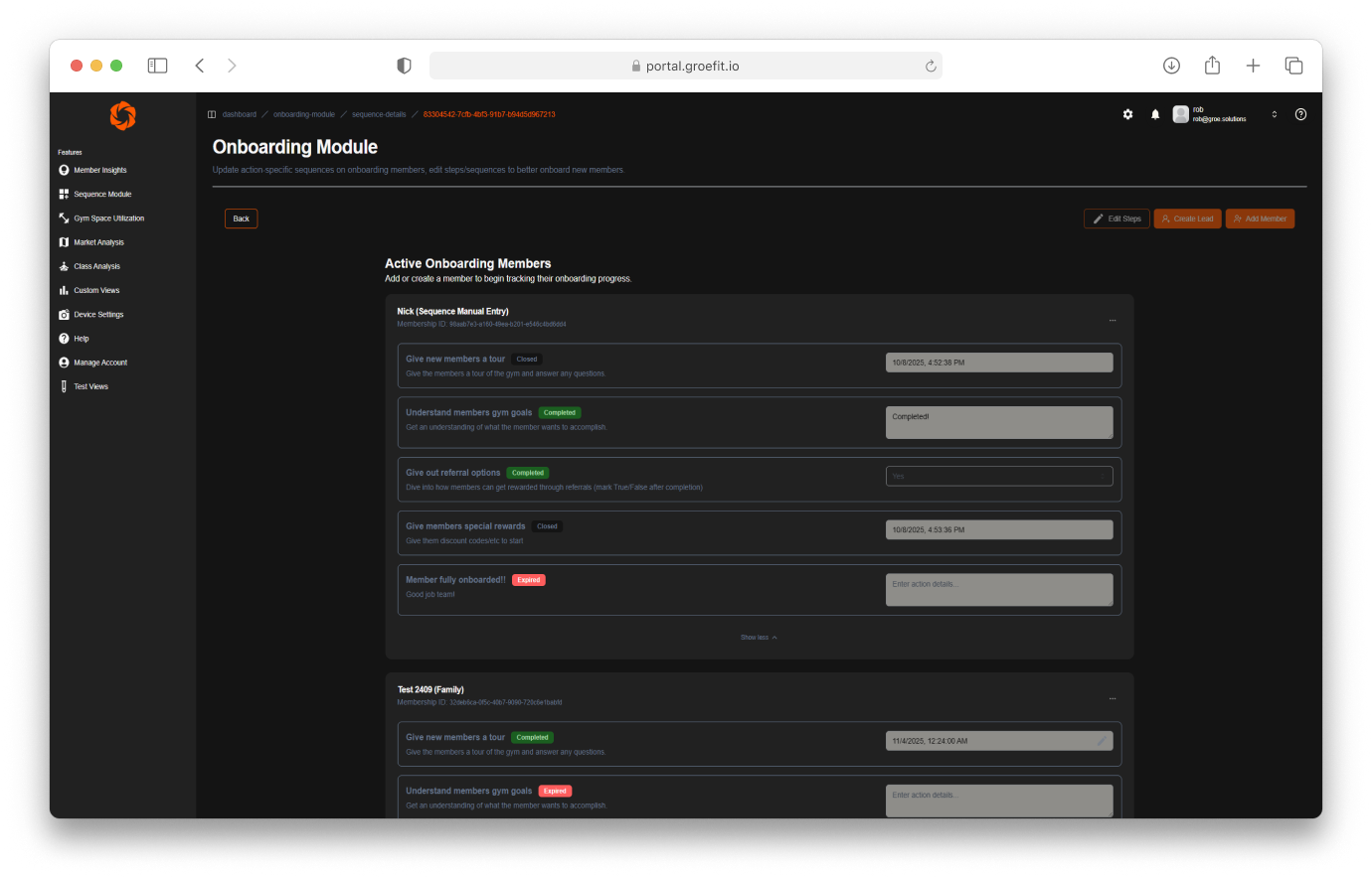 No. GroeFit reduces manual effort by surfacing who needs attention and when. Instead of chasing checklists or spreadsheets, staff can focus on meaningful interactions with new members.